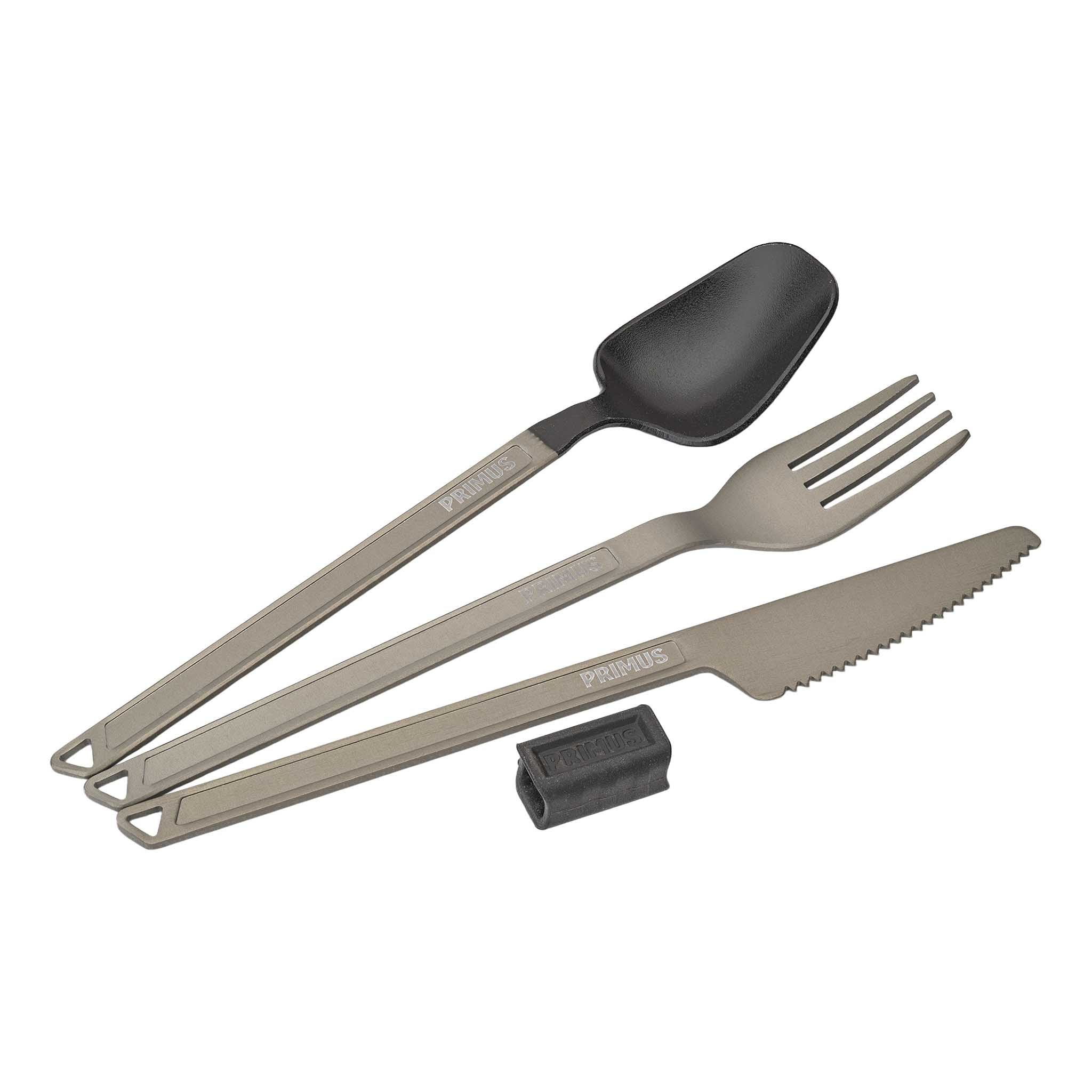 - Lightweight and compact camp cutlery made from durable hard-anodised aluminium