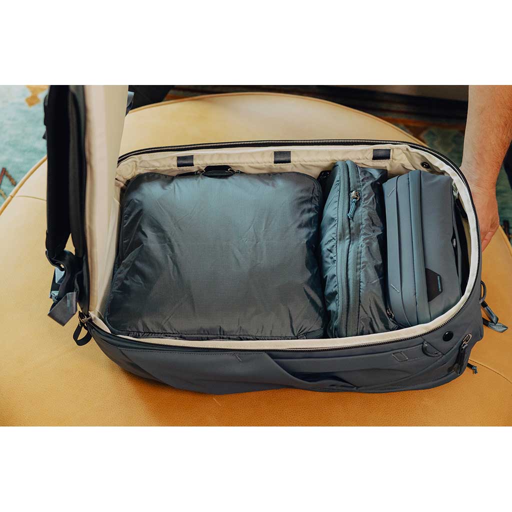 Gear Patrol called these amazing packing cubes the 'under-the-radar-winner' of Peak Design' travel line. Their special 'tear-away' zips are ultra-fast to open, and each packing cube features compression/expansion zips to squash your stuff down. Inside, a moving divider creates two sections for clean and dirty clothes, and the compartments auto-adjust in size as your trip goes on. Built in weatherproof 70D nylon/poly fabric, the material is weatherproof and also self-healing – meaning that it closes small punctures or abrasions.