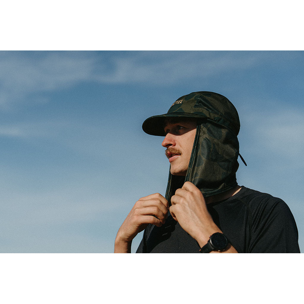 When the sun’s unrelenting, the FRACTEL L-Series Premium Cap is your best defence. Built for the most extreme environments on Earth, it delivers full 360° coverage with an extended neck flap to keep you protected in harsh conditions. Crafted from recycled fabrics, it’s lightweight, breathable, quick-drying and finished with UPF 30+ protection for serious performance under the sun. With a soft internal sweatband, this cap stays comfortable on long adventures, while its machine-washable design keeps it ready for more. Whether you’re out on desert trails, alpine crossings or blazing through summer runs, the L-Series Premium keeps you cool, covered and confident.