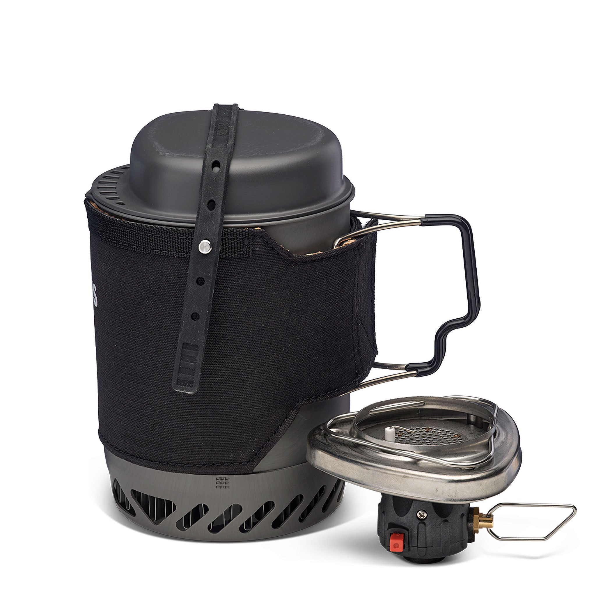 • Lightweight burner locks securely to the pot when in use and stows conveniently inside along with a 100g gas canister for ultimate packability
