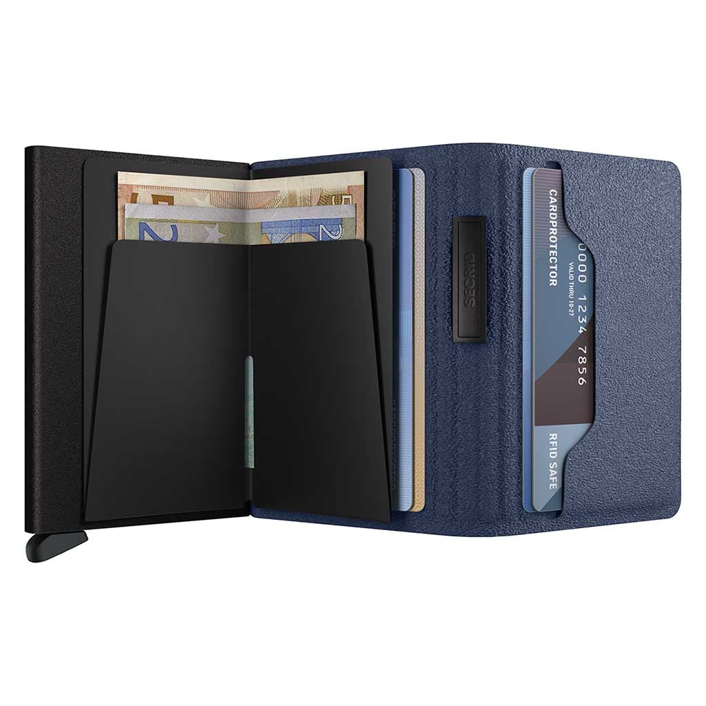 • Holds up to 6 cards in slick RFID-blocking Cardprotector mechanism, plus space for 6 extras in rear sleeve