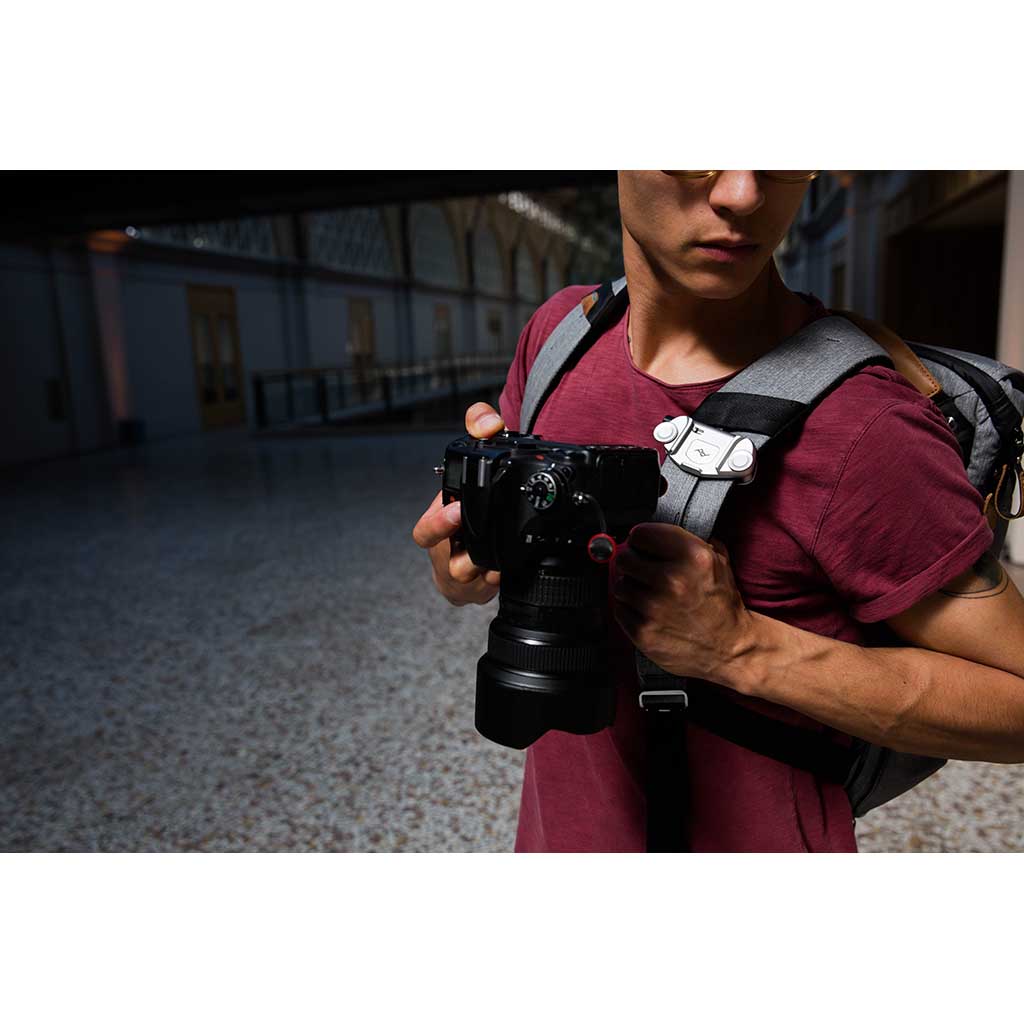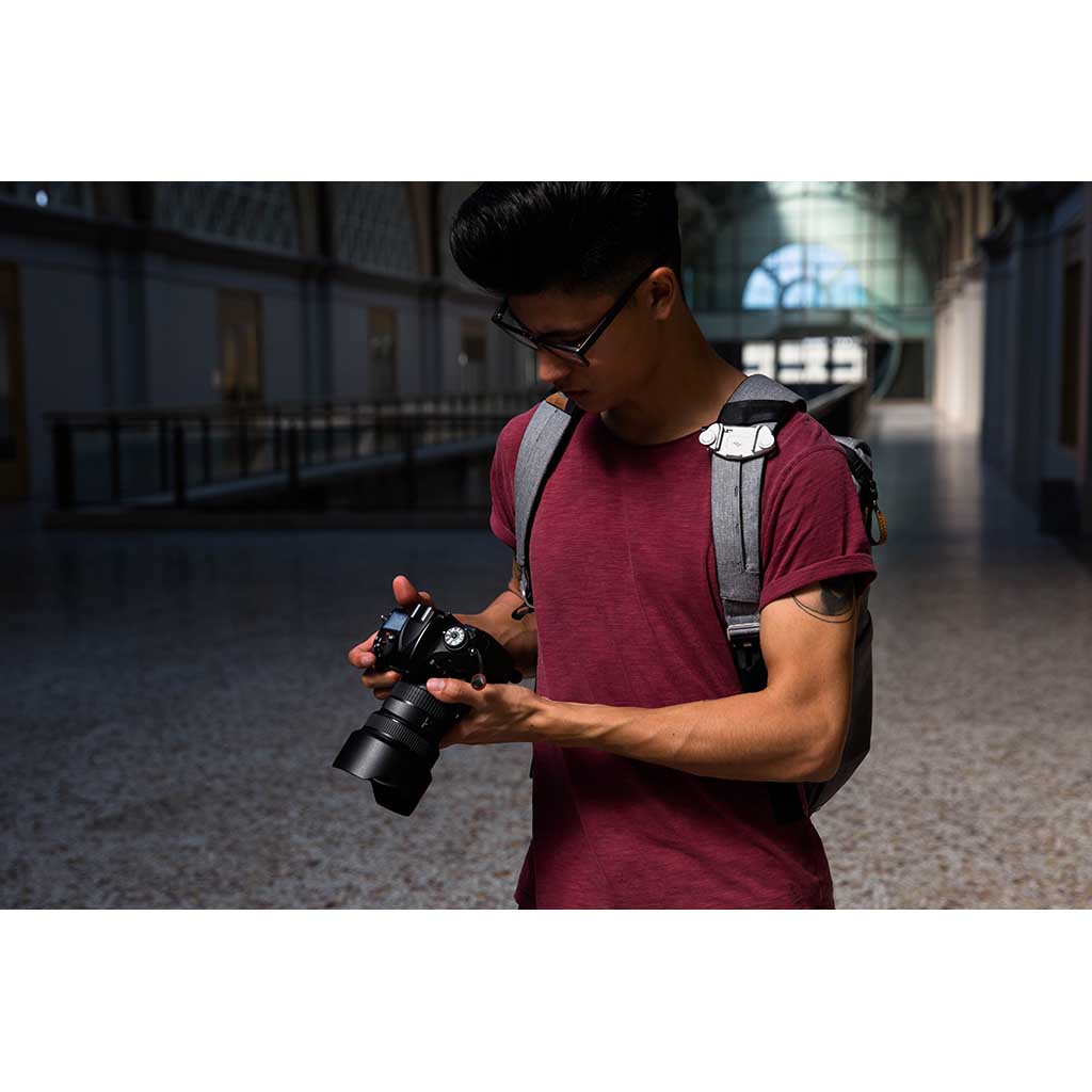 Capture V3 is the ultimate tool for fast-moving creatives who need their camera close — but not swinging around their neck. Whether you’re scrambling up a ridgeline or weaving through a busy city street, this pro-grade clip locks your camera securely to your backpack strap, belt, or hip — keeping it stable, protected, and instantly accessible. Designed with a sleek, all-metal build, it’s 20% lighter than the previous version but even tougher, with an ultra-low profile that won’t snag or shift. The quick-release button gives you one-handed access to your DSLR or mirrorless setup, while the included Arca-compatible plate means you can go from carry to tripod in seconds. Trusted by photographers, climbers, and filmmakers around the world, it’s hands-free carry done right — streamlined, bombproof, and built for whatever your adventure throws at you.
