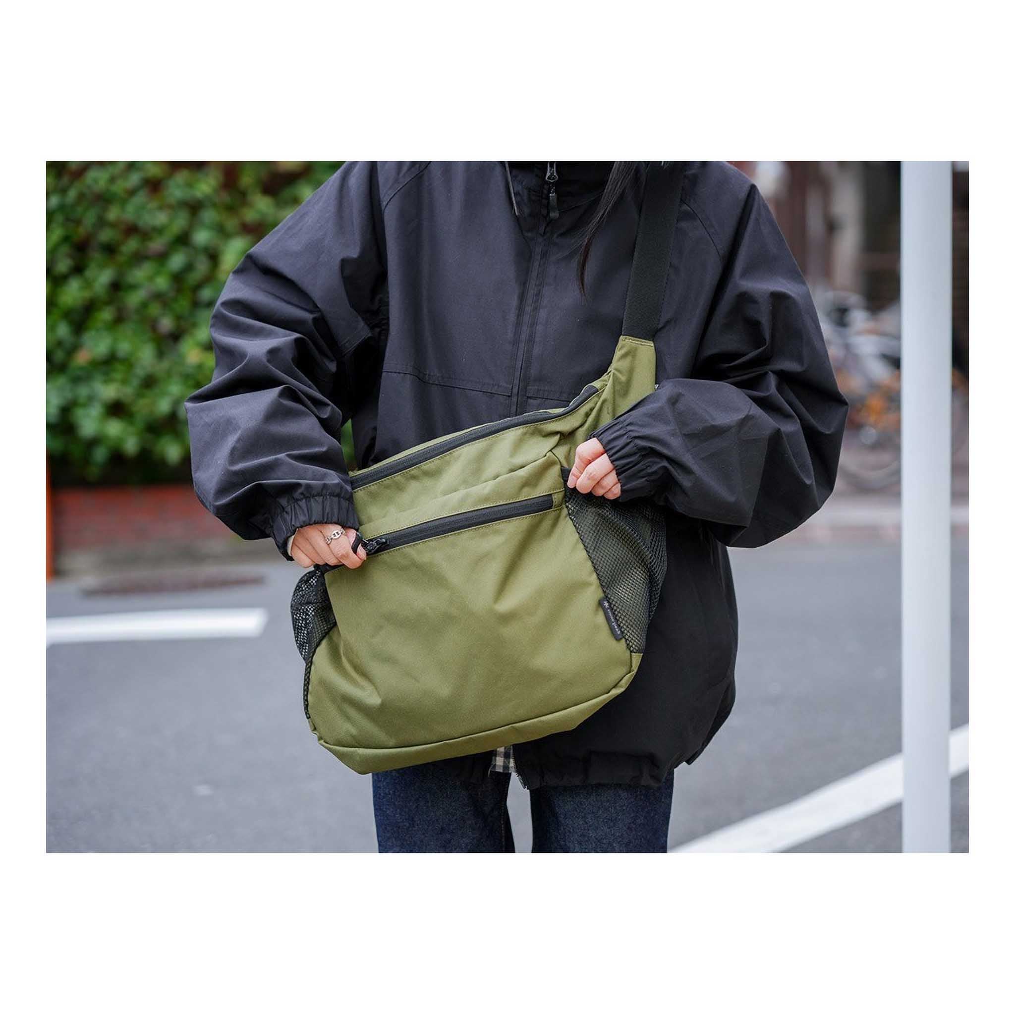 Snow Peak's mid-sized shoulder bag sits diagonally across your body, holding around 17 litres without feeling bulky. It’s a redesign of an old favourite, upgrading the water-repellent coating and some of the materials to more environmentally friendly ones, trimming a bit of weight and refining the shoulder strap for a more comfortable carry. Offering a combination of zip compartments and mesh side pockets, the 100% nylon construction with PFC-free DWR treatment fends off drizzle and gives you plenty of room for all your daily clobber.