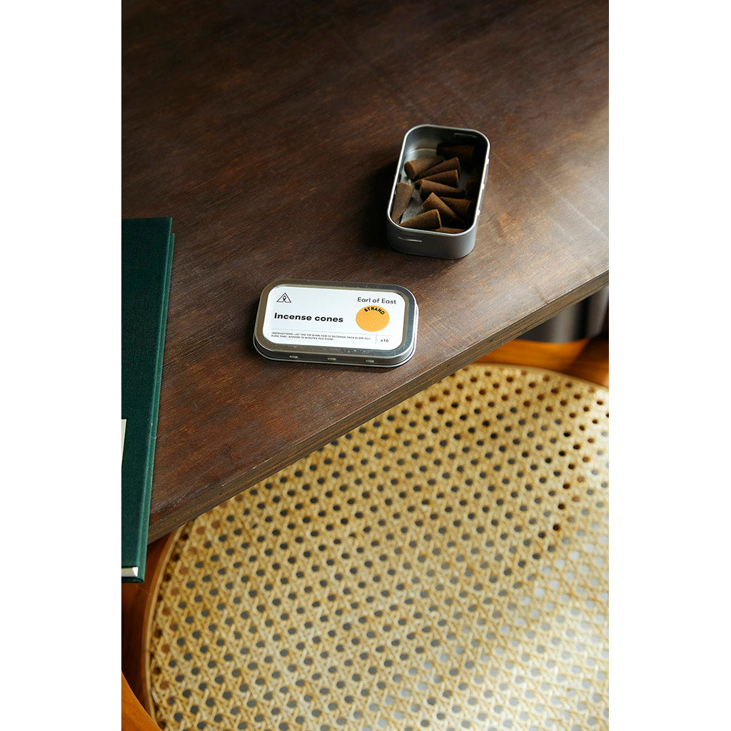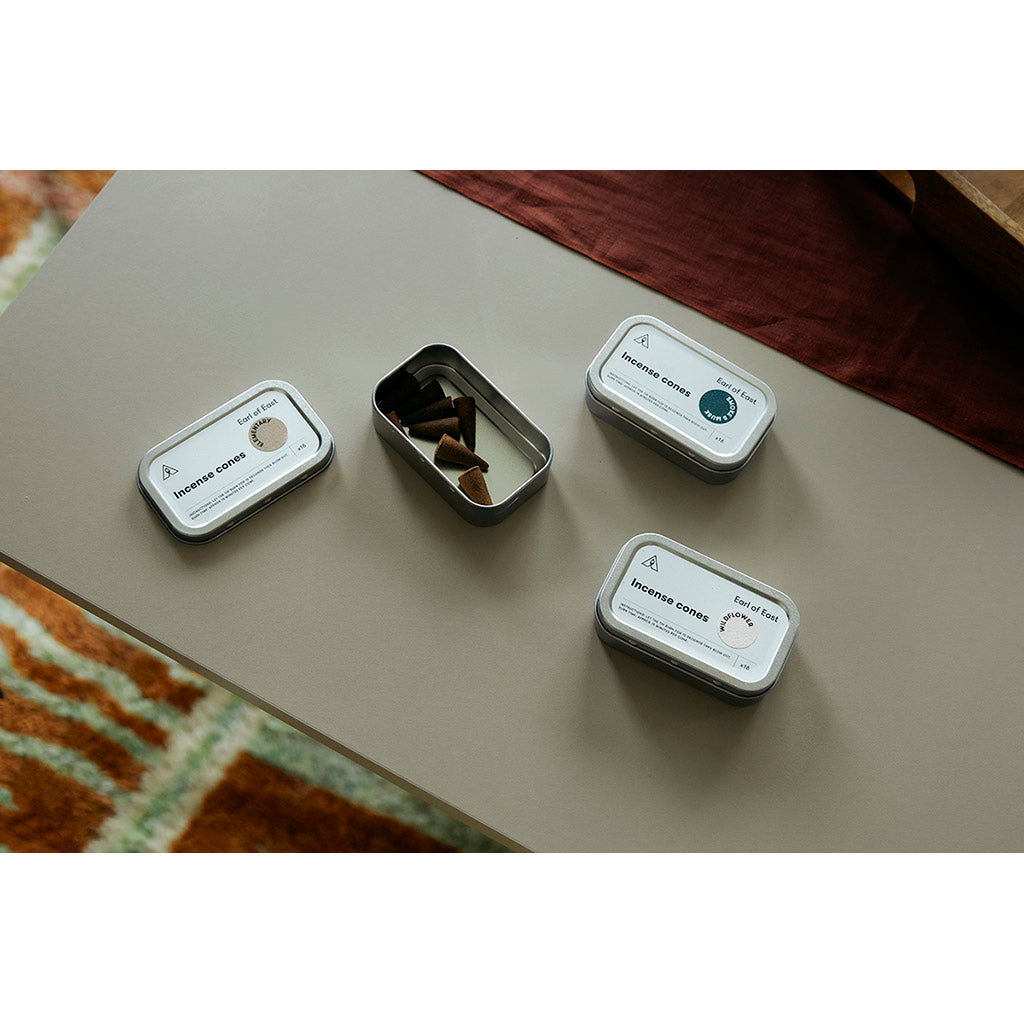 - Compact gift tin containing 16 scented incense cones