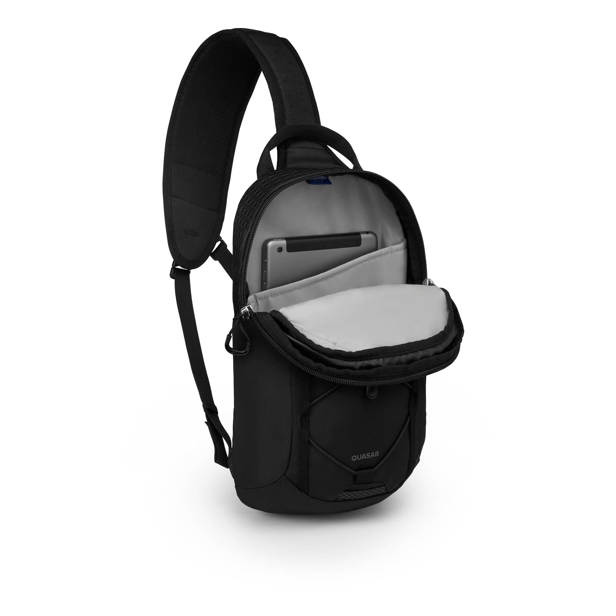• Ambidextrous shoulder strap with harness pocket for phone