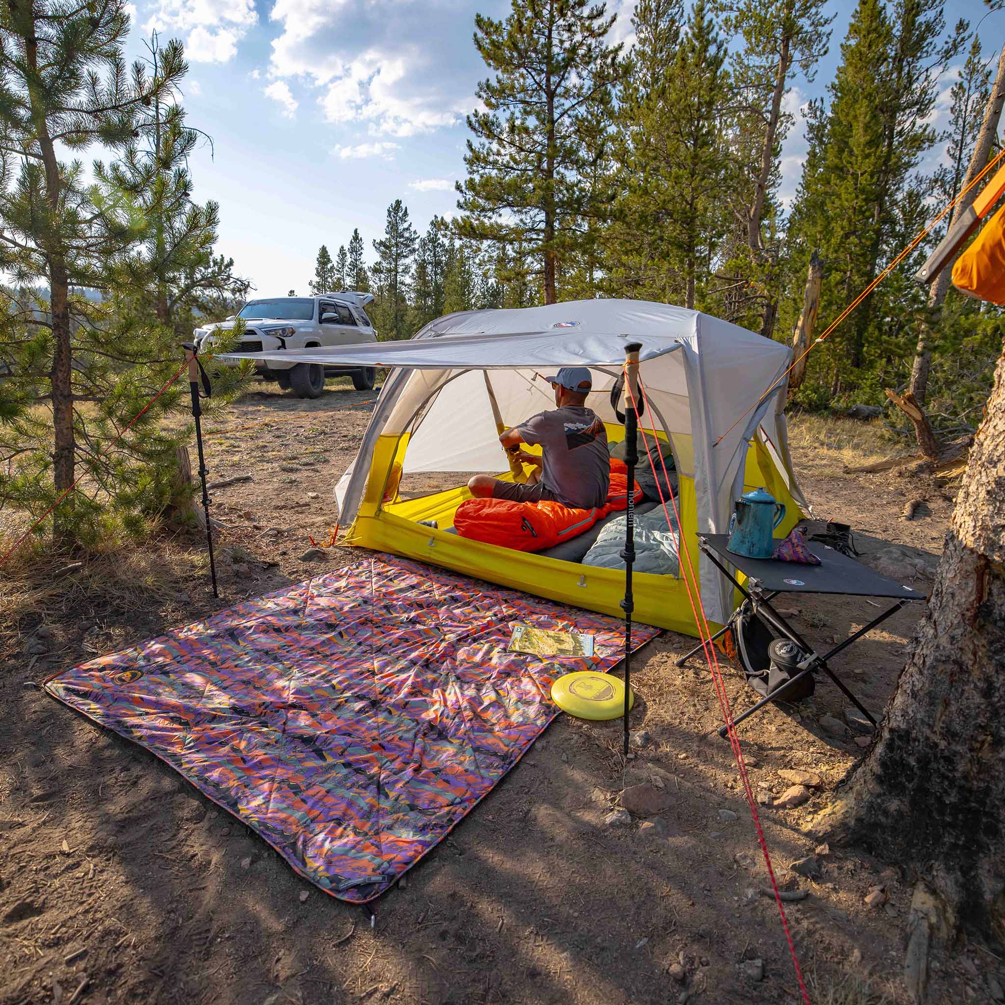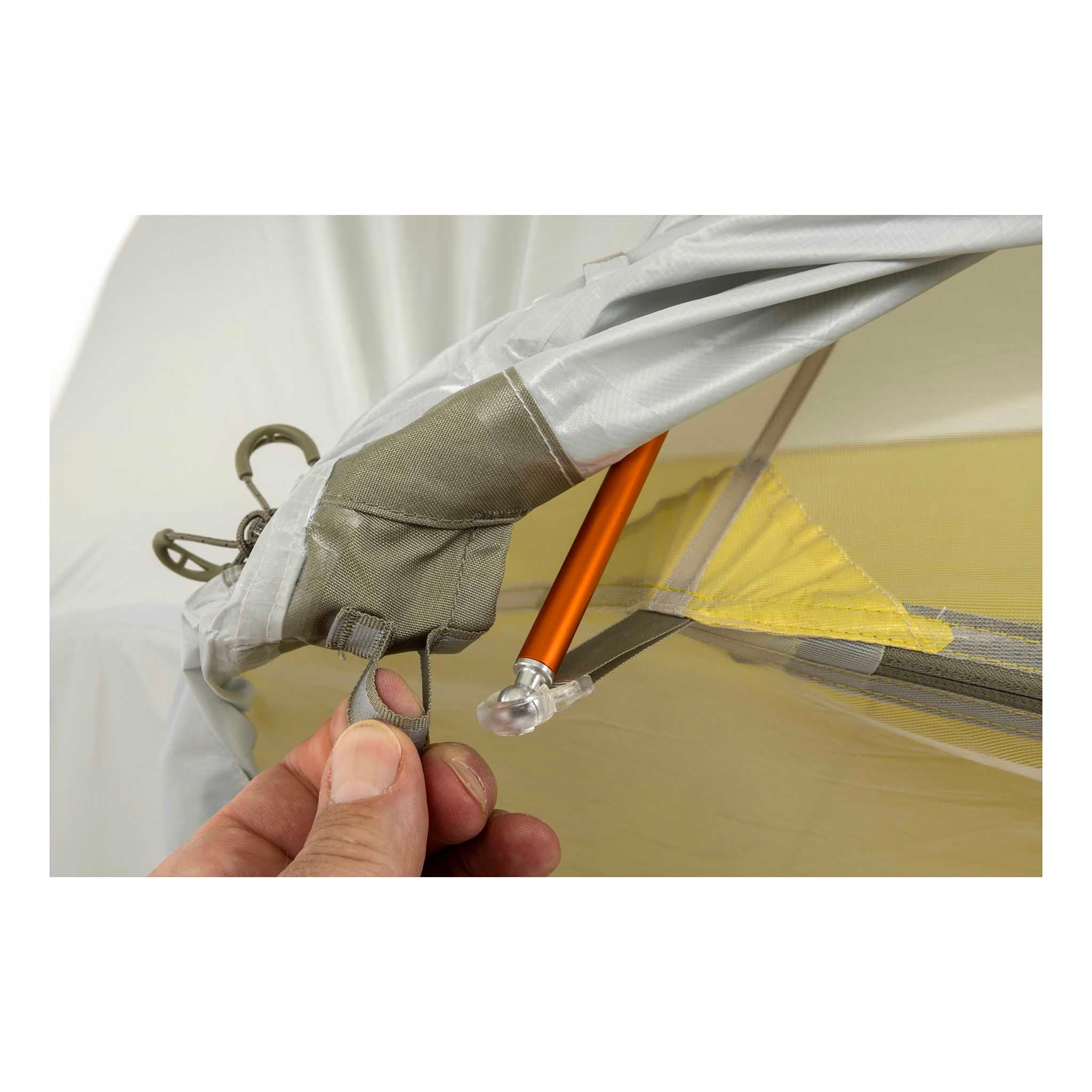 Rainfly/Floor: 20D polyester ripstop with 1500mm waterproof polyurethane coating, without intentionally added PFAS Tent