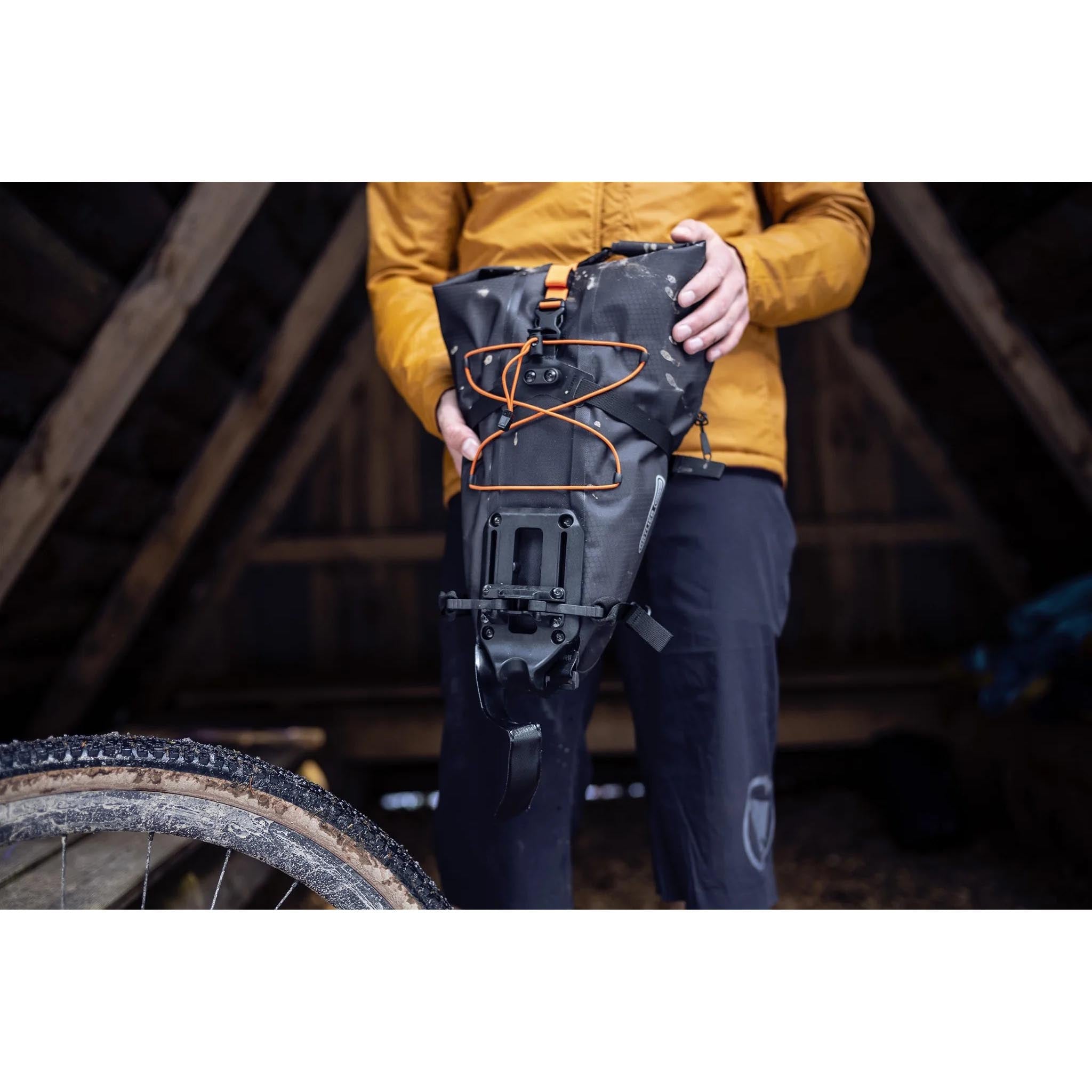 Bikes are a great way to get from A to B, but they don’t have much in the way of on-board storage. The solution is Ortlieb’s range of bikepacking bags, including their nifty new Seat Pack QR. A new quick release mounting system attaches easily and securely to your seat stem. A protective under plate also serves as a rear fender, guarding against mud splashes and trail debris. The fully waterproof design keeps contents safe and dry, while multiple compression straps and an air valve allow you to cinch or expand the volume as required.