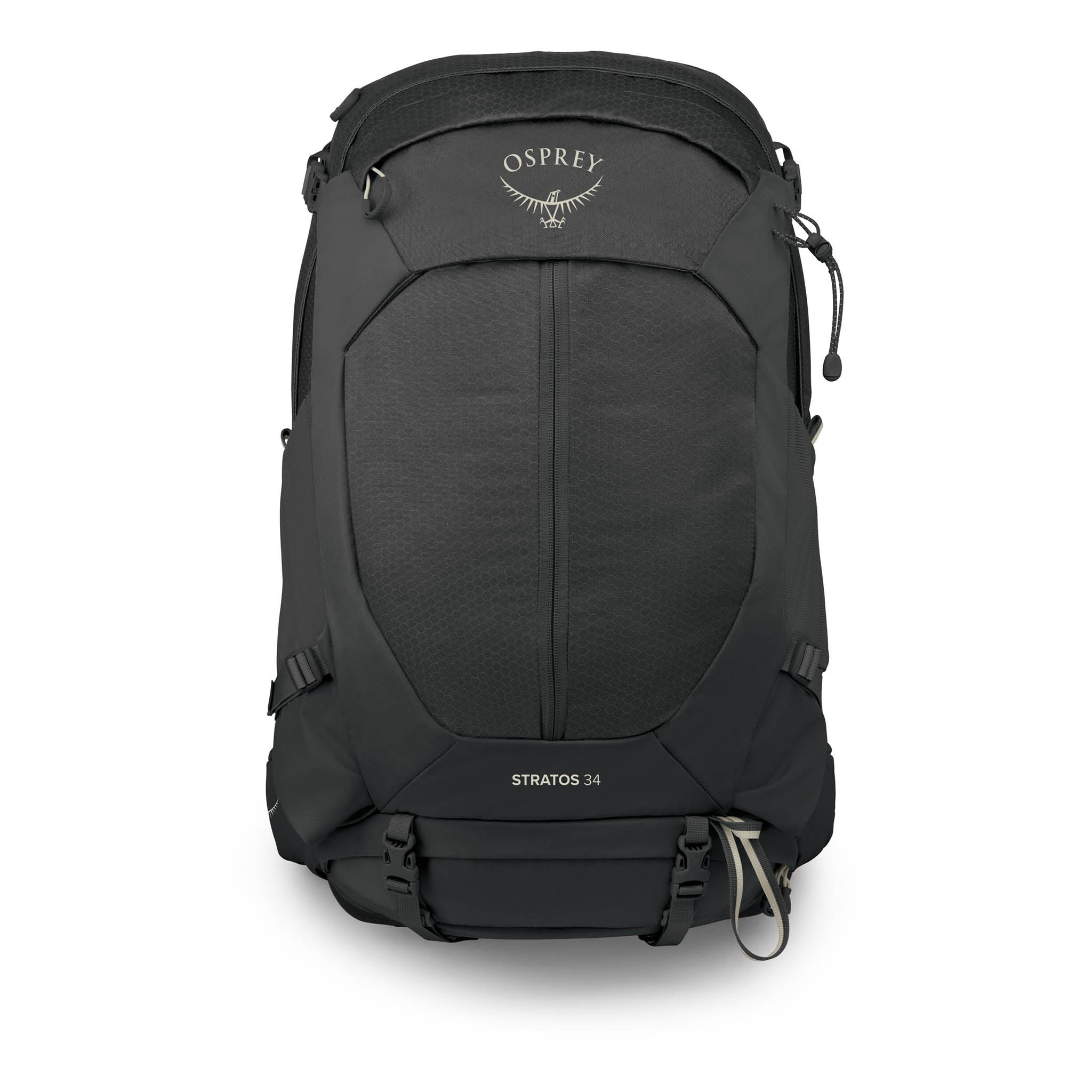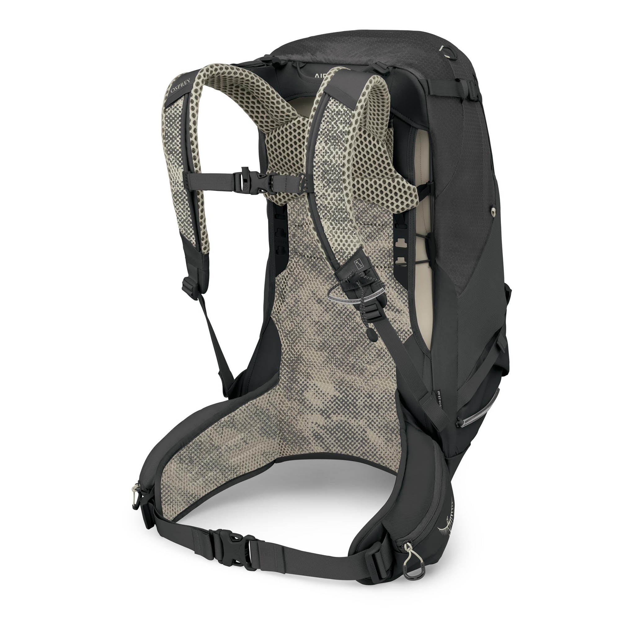 When you want quick access to your kit without having to go through a buckled lid, the Stratos 34 delivers with wide dual-zipper panel access. It’s a brilliant design for organised packers. There's also zippered bottom access to a separate collapsible compartment (perfect for isolating wet or dirty gear), removable webbing straps for lashing extra kit to the outside, and a zippered top pocket with key clip. The AirSpeed backpanel – Osprey's tensioned-mesh design with a wire perimeter frame – keeps the pack away from your back for added ventilation. Meanwhile, updated ladder-style torso adjustment and redesigned shoulder straps expands the fit range. Twin hipbelt pockets, a large vertical-zip front stash pocket, stretch side pockets, hydration compatibility, and Stow-on-the-Go trekking pole attachments round out a comprehensive and trail-friendly set of features.
