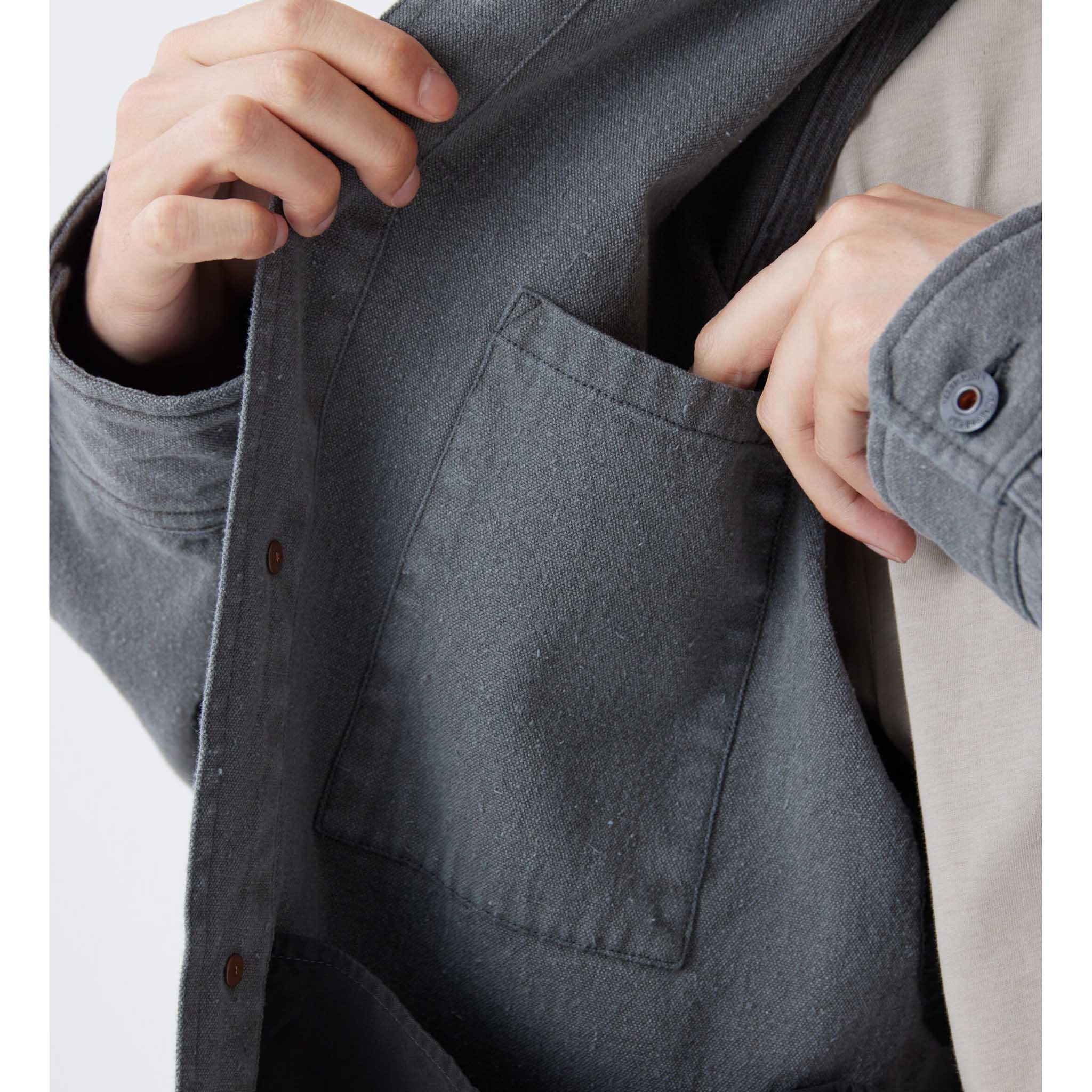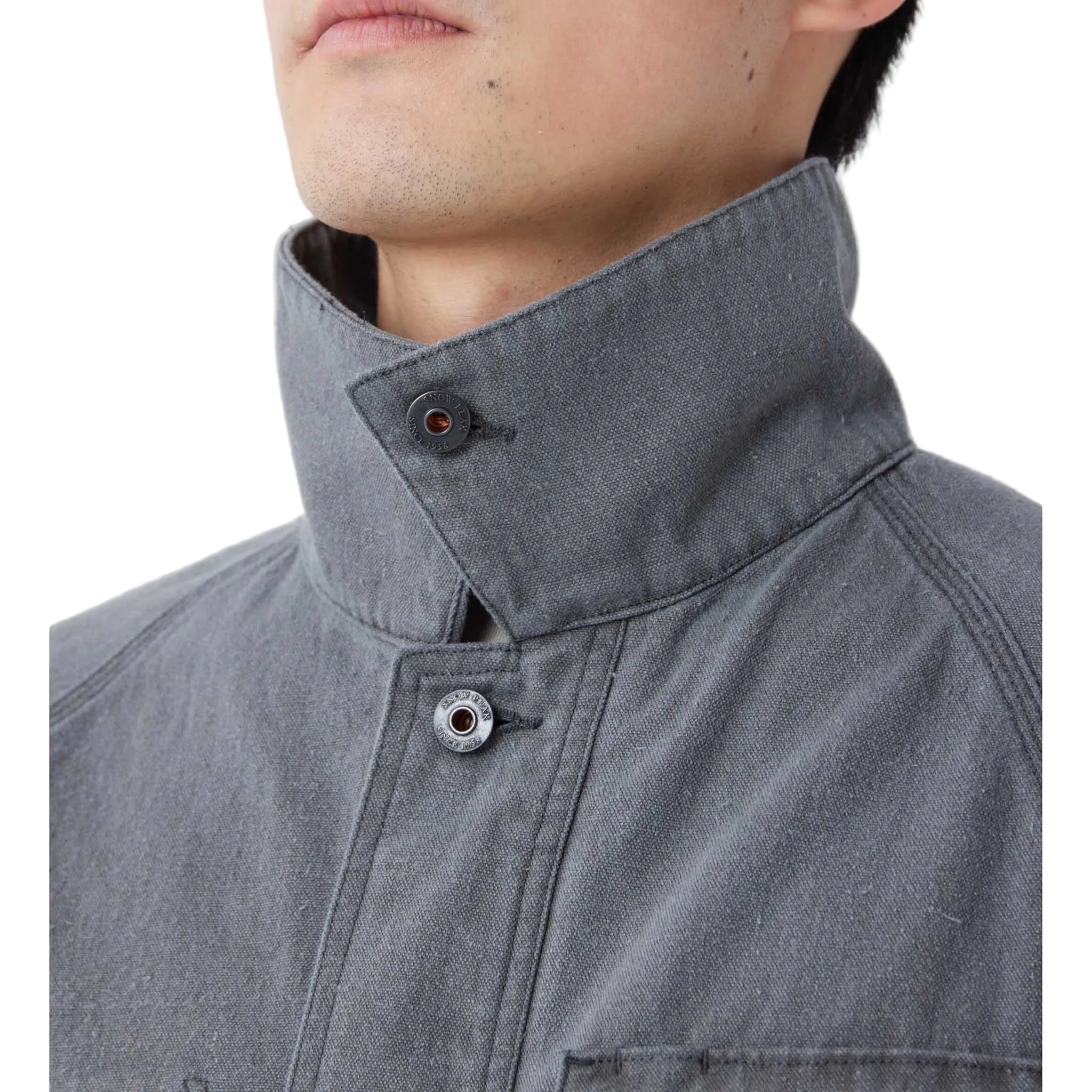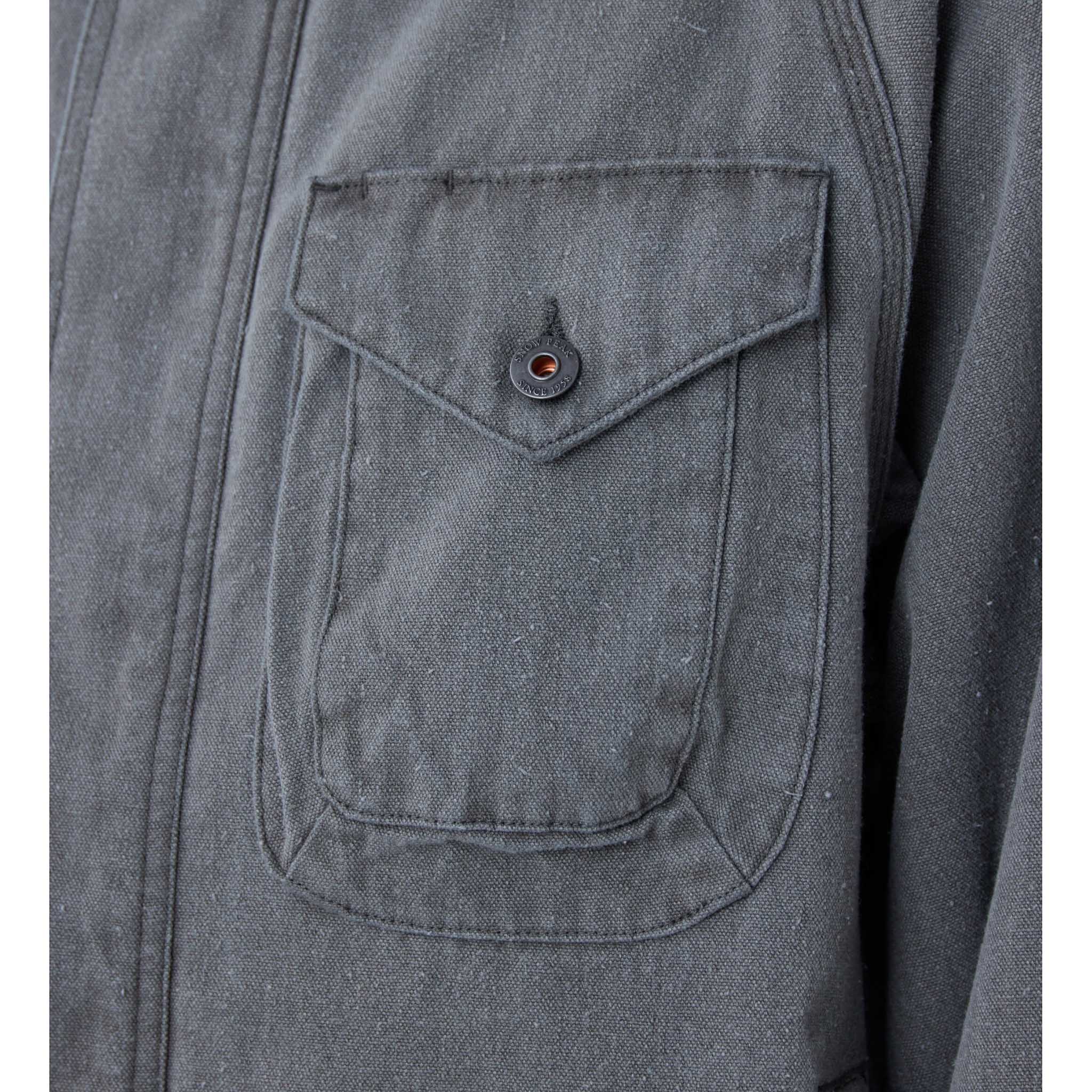 Snow Peak's chore jacket skips the breaking-in period entirely. Cut short and boxy, the 10-ounce cotton canvas goes through pigment-dye processing with a stone-wash finish, giving it a worn-in, faded look from the moment you put it on. It’s based on your classic French chore jacket, but with some stylish extra details like the button-across neck and adjuster tabs at the hem. Triple stitching throughout adds durability and visual texture, while custom-made metal buttons give it a smarter feel. They’ve replaced the usual front patch pockets with side-entry ones, and a particularly practical touch is the ventilated back yoke. It all adds up to a jacket that marries workwear aesthetics with outdoor functionality.