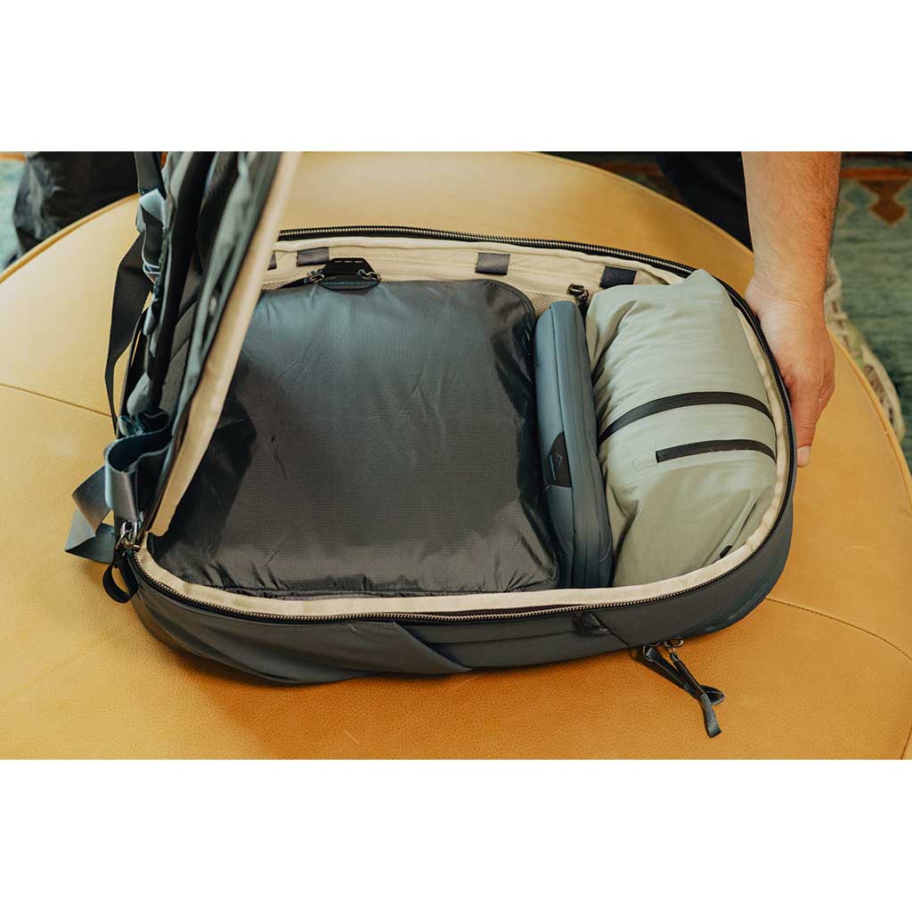 The 45-litre version of the Peak Design Travel Backpack won National Geographic's best overall travel bag award for 2024, and this smaller sibling boasts most of the same features in a package more suitable for weekend adventures or daily use. Designed with a base capacity of 30 litres, you can expand it up to 33 litres to make the most of your carry-on allowance or compress it down to a more compact 27-litre daypack. Access to the interior is via a clamshell zip round the back panel, and inside you've got padded compartments for tablet and laptop, plus a variety of zipped mesh pockets. If the internal capacity isn't enough for you, there are also expandable side pockets, plus a large soft-lined top pocket and clever stowable external straps for securing extra gear. A padded, adjustable backpack harness stashes neatly under magnetic flaps in the back panel, so you can streamline it down to suitcase form for snag-free travel. Your shell fabric is weatherproof recycled 400D nylon canvas, the zips are waterproof and abrasion resistant, and the whole thing is padded with ultralight foam.