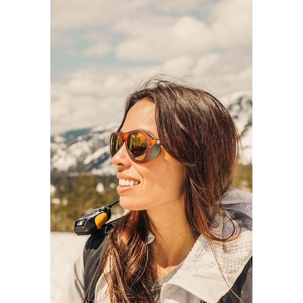 Sunski’s Treeline is a medium-large sized frame ideal for high glare conditions, like winter mountaineering, snow sports and alpine climbing. With maximum wrap and great all-round coverage that can be further boosted by inserting the removable magnetic sun shields, they’ll keep your eyes safe and squint-free, even against blinding white snow. High contrast polarised lenses also boost your vision in challenging conditions, while grippy rubber nose pads keep the Treelines in place, ensuring they never slip or slide. Classic looks and a keyhole bridge evoke the golden age of exploration. And like all Sunski shades, they’re sustainably made from Superlight recycled polycarbonate resin.