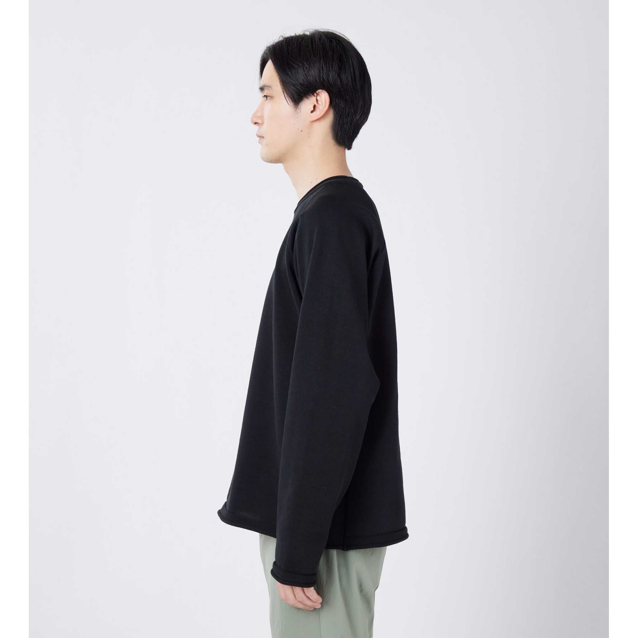 • No ribs, with roll-up details for soft, T-shirt-like feel